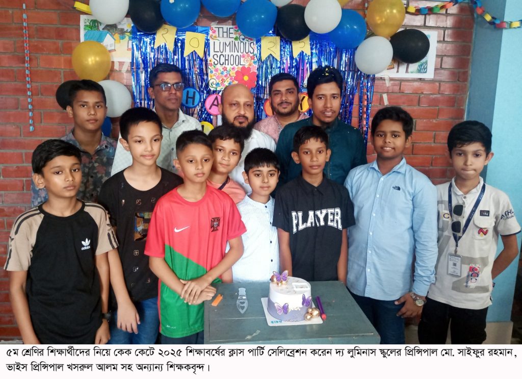 সিলেট মহানগরীর ৩৪নং ওয়ার্ড এর শাহপরানস্থ সুপরিচিত বেসরকারি শিক্ষা প্রতিষ্ঠান “দ্য লুমিনাস স্কুল”-এর ২০২৫ শিক্ষাবর্ষের সিলেবাস বা শিক্ষা সমাপনী উপলক্ষে অত্যন্ত আনন্দময় ও কোলাহলপূর্ণ পরিবেশে ক্লাস পার্টি উৎসব সম্পন্ন হয়েছে। গতানুগতিক ক্লাসের একঘেয়েমি দুর করতেই এই অনুষ্ঠানের আয়োজন করে শিক্ষার্থীরা।