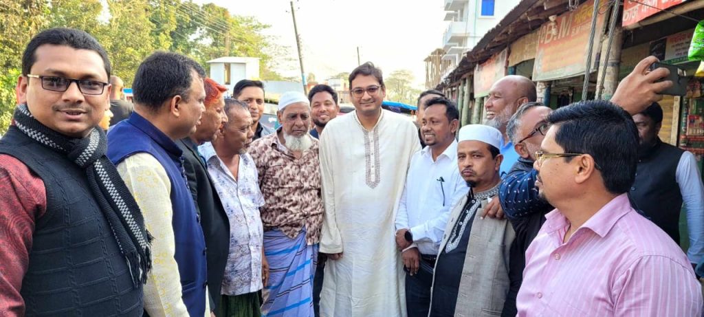 সুনামগঞ্জ জেলার শান্তিগঞ্জ উপজেলা পরিষদ নির্বাচনে চেয়ারম্যান পদপ্রার্থী হিসেবে গণসংযোগ করলেন, সাবেক পরিকল্পনামন্ত্রী, পরিকল্পনা মন্ত্রণালয়ের সংসদীয় স্থায়ী কমিটির সভাপতি এম এ মান্নান এমপির ছেলে অর্থনীতিবিদ সাদাত মান্নান অভি।