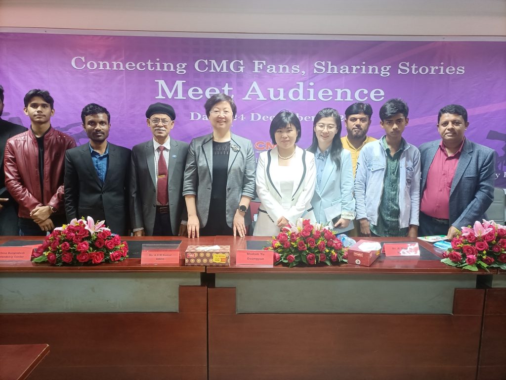 বাংলাদেশ ও চীনের জনগণের মধ্যে নিবিড় যোগাযোগ ও বন্ধুত্ব স্থাপনের লক্ষ্যে ‘মিট দ্য অডিয়েন্স’ অনুষ্ঠানে সিএমজির দর্শক, শ্রোতা, পাঠক এবং ফ্যানদের সঙ্গে মতবিনিময়ের সুযোগ করে দেওয়া হয়। সিএমজির বাংলা বিভাগের পরিচালক মাদাম ইয়ু কুয়াং ইউয়ে (আনন্দী) অনুষ্ঠানে তার বক্তব্যে বলেন, দীর্ঘদিন পর আপনাদের সঙ্গে দেখা হয়ে আমরা আনন্দিত। আজ এখানে এসে ২০০৩ সালের কথা মনে পড়েগেল। সেবার এই প্রেসক্লাবে আমরা অনেক বড় পরিসরে শ্রোতা সম্মেলনের আয়োজন করেছিলাম। সেসময় বাংলাদেশের ৬ বিভাগ থেকে অনেক শ্রোতা এসেছিল। তাদের মধ্যে প্রবীণ এমনকি বিশেষ চাহিদাসম্পন্ন মানুষরাও ছিল। তখন আমরা সত্যি মুগ্ধ হই। এত বছর পর আমরা আপনাদের সঙ্গে বসতে পেরে সত্যি আনন্দিত। আপনারা সব সময় আমাদের দেখেন এবং আমাদের শোনেন। এতে আমরা গর্বিত।’